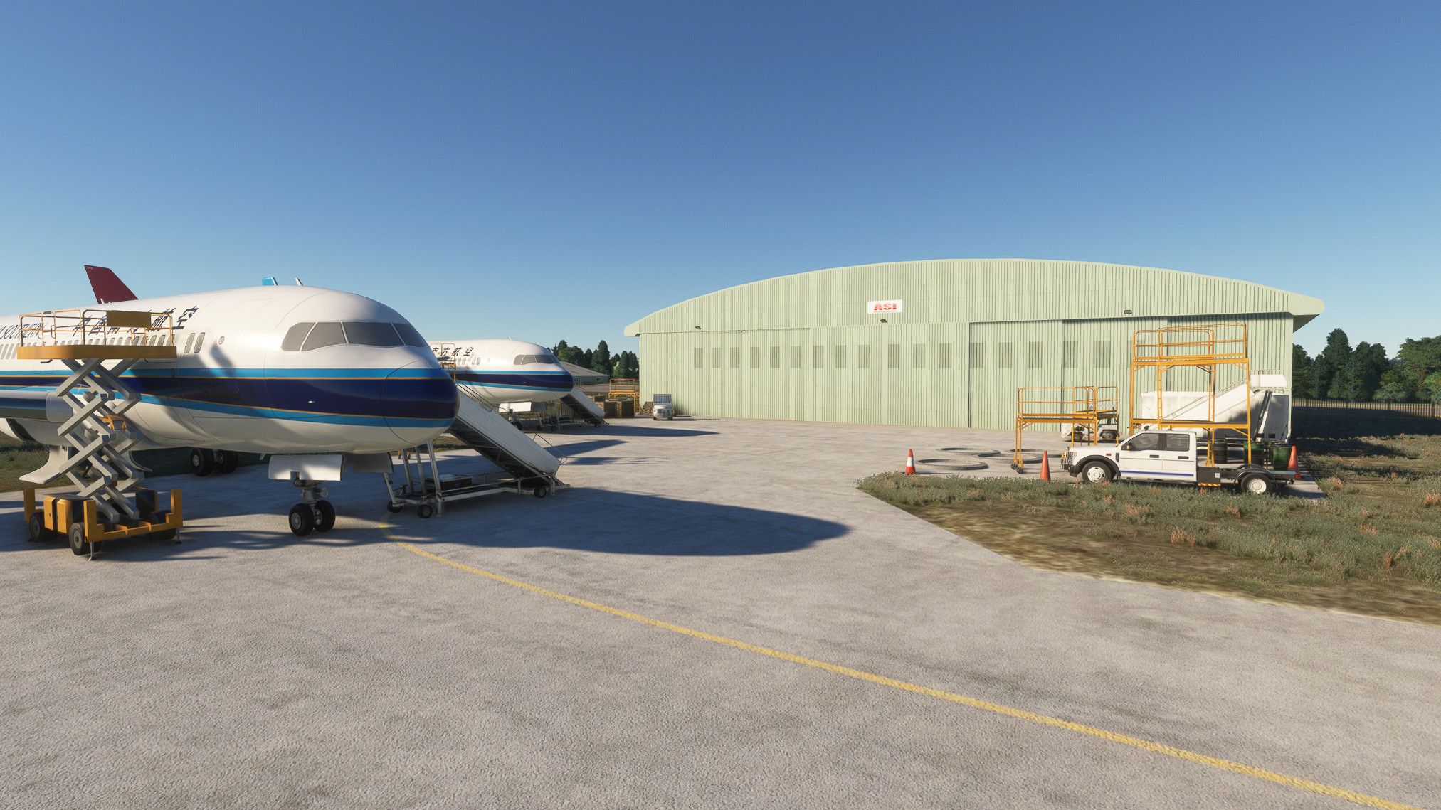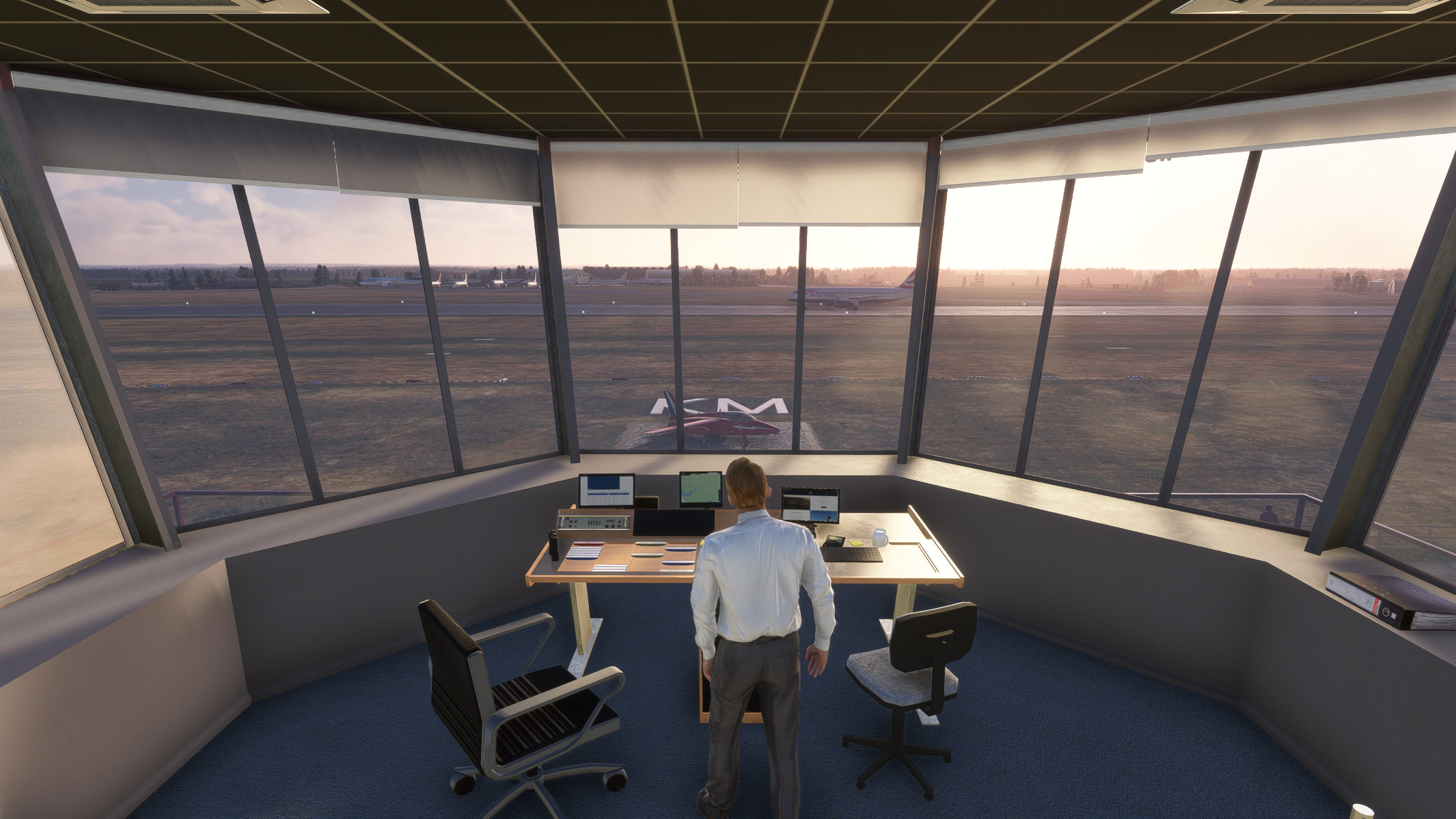 - Detailed control room and hangar interiors with animated hangar doors which close at night (open manually with Taxi Lights)