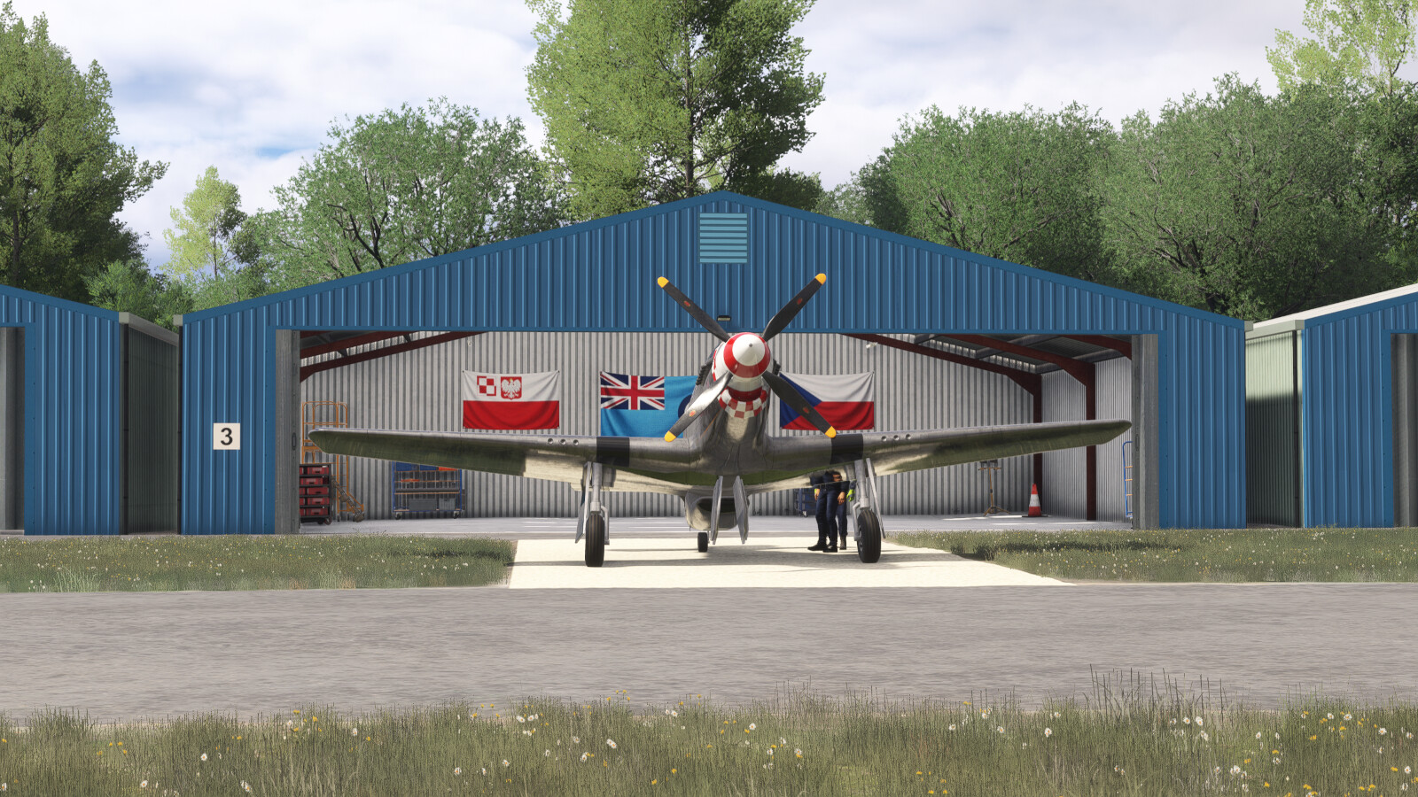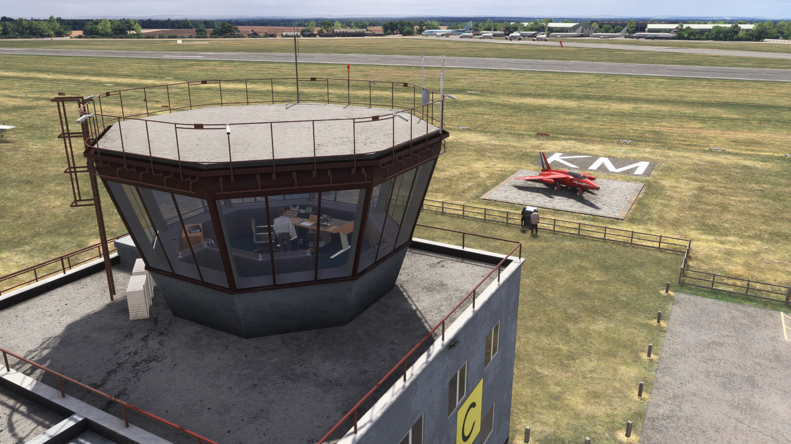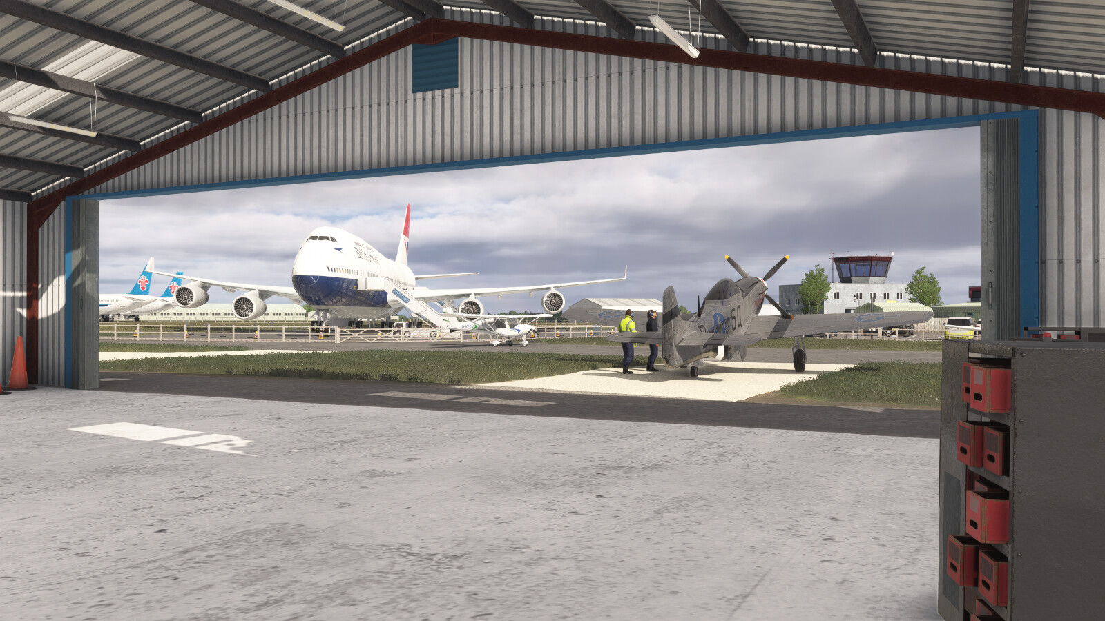 - Detailed control room and hangar interiors with animated hangar doors which close at night (open manually with Taxi Lights)