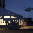 - Animated hangar doors which close at night.