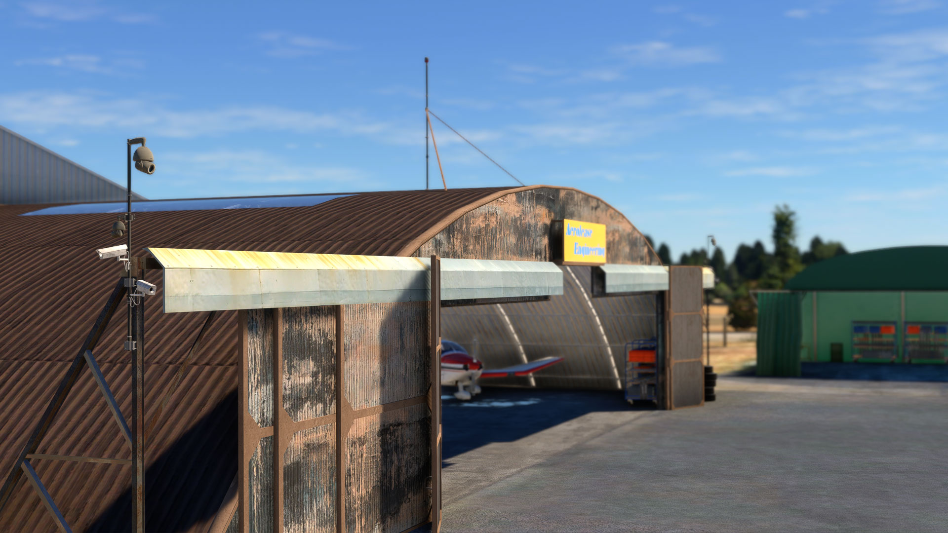 - Animated hangar doors which close at night.